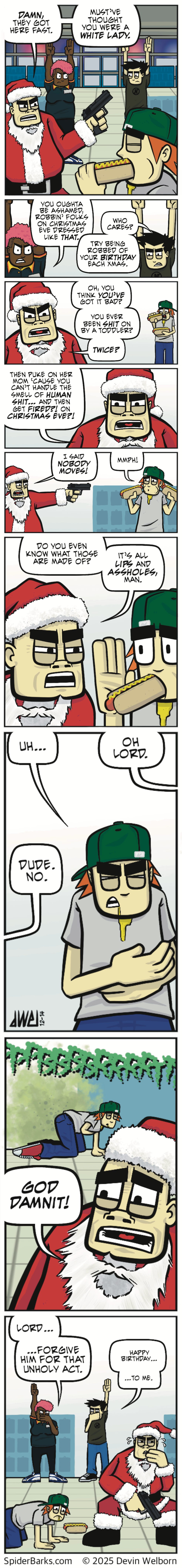 The tension at the Fuel & Flask is thick this Christmas Eve. With the cops outside and Santa unraveling, Jason’s hot dog binge pushes the standoff into deeply uncomfortable territory—all while Mike keeps complaining about his merry birthday. What started as a simple holiday robbery takes a drastic turn this week, and the gas company definitely won’t be able to fix this leak.